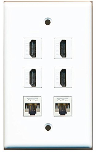 RiteAV - 4 x HDMI and 2 x Ethernet Cat5e Port Wall Plate White