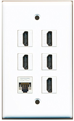 RiteAV - 5 HDMI 1 Port Cat5e Ethernet White Wall Plate