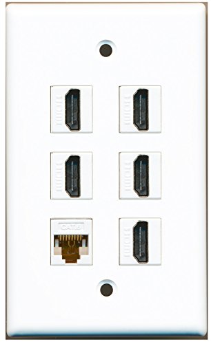 RiteAV - 5 HDMI 1 Port Cat6 Ethernet White Wall Plate