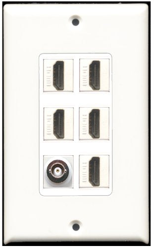 RiteAV - 5 Port HDMI 1 BNC Wall Plate White