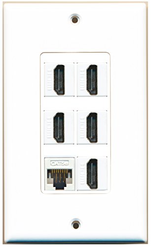 RiteAV - 5 Port HDMI 1 Cat5e Ethernet White Wall Plate Decorative