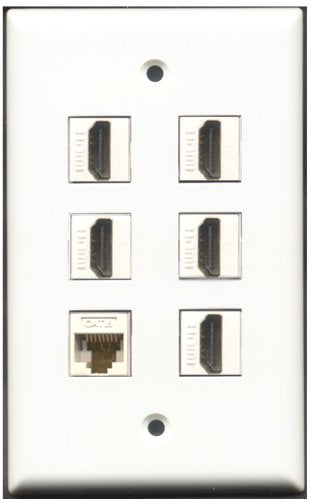 RiteAV - 5 Port HDMI 1 Cat6 Ethernet White Wall Plate