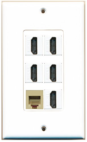 RiteAV - 5 Port HDMI 1 Phone RJ11 RJ12 Beige Wall Plate Decorative