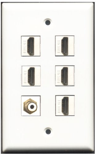 RiteAV - 5 Port HDMI 1 RCA White Wall Plate