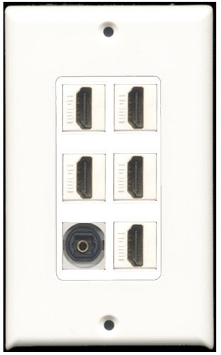 RiteAV - 5 Port HDMI 1 Toslink Wall Plate White