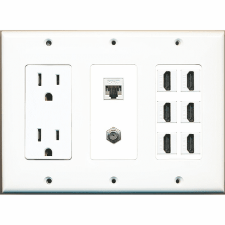 RiteAV 6 Hdmi 1 Cat5e 1 Coax Power Outlet Wall Plate White