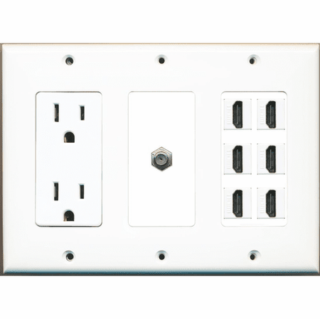 RiteAV 6 Hdmi Coax Power Outlet Wall Plate White