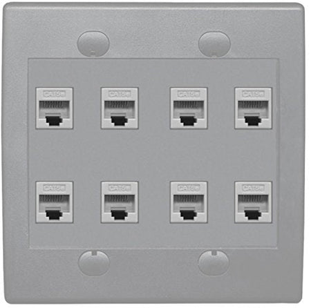 RiteAV 8 Port Flat Dual 2 Gang Ethernet Cat5e RJ45 Network Wall Plate - Gray
