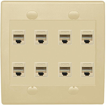 RiteAV 8 Port Flat Dual 2 Gang Ethernet Cat5e RJ45 Network Wall Plate - Ivory