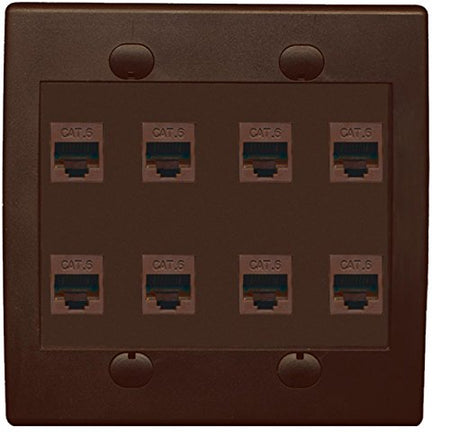 RiteAV 8 Port Flat Dual 2 Gang Ethernet Cat6 RJ45 Network Wall Plate - Brown