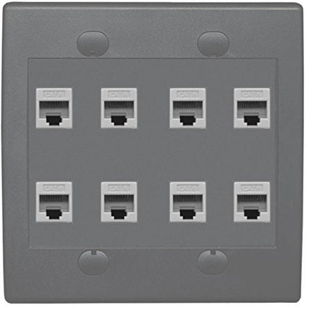 RiteAV 8 Port Flat Dual 2 Gang Ethernet Cat6 RJ45 Network Wall Plate - Gray
