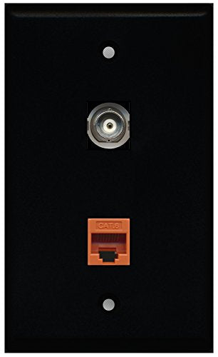 RiteAV - Black 1 Port BNC 1 Port Cat6 Ethernet Orange Wall Plate