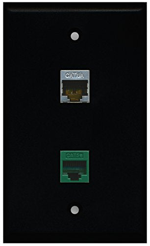 RiteAV - Black 1 Port Cat5e Ethernet Green 1 Port Cat6a Wall Plate