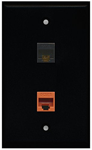 RiteAV - Black 1 Port Cat6 Ethernet Black 1 Port Cat6 Ethernet Orange Wall Plate