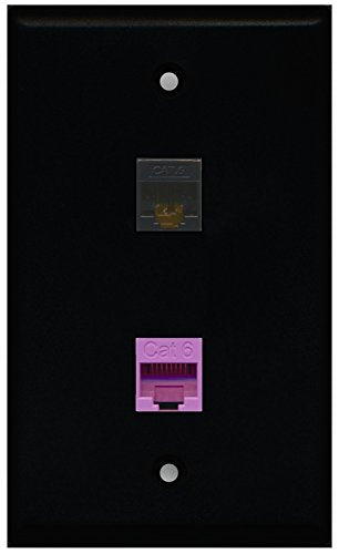 RiteAV - Black 1 Port Cat6 Ethernet Black 1 Port Cat6 Ethernet Purple Wall Plate