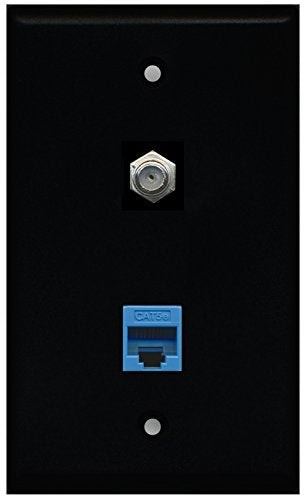 RiteAV - Black 1 Port Coax Cable TV- F-Type 1 Port Cat5e Ethernet Blue Wall Plate