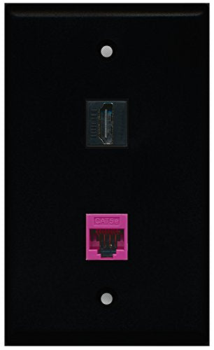 RiteAV - Black 1 Port HDMI 1 Port Cat5e Ethernet Pink Wall Plate