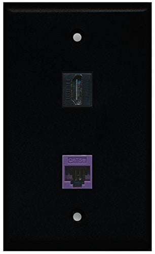 RiteAV - Black 1 Port HDMI 1 Port Cat5e Ethernet Purple Wall Plate