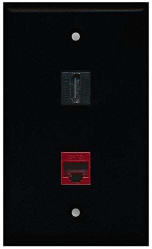 RiteAV - Black 1 Port HDMI 1 Port Cat6 Ethernet Red Wall Plate