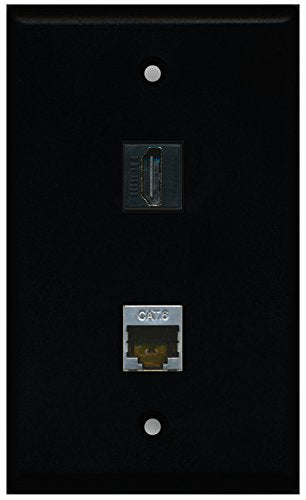 RiteAV - Black 1 Port HDMI 1 Port Shielded Cat6 Ethernet Wall Plate