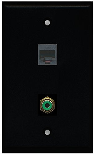 RiteAV - Black 1 Port RCA Green 1 Port Phone Black Wall Plate