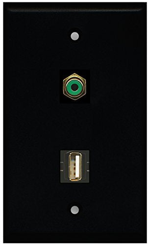 RiteAV - Black 1 Port RCA Green 1 Port USB A-A Wall Plate
