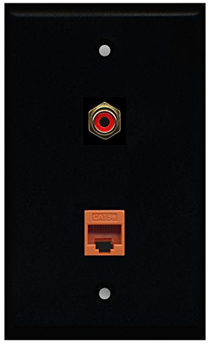 RiteAV - Black 1 Port RCA Red 1 Port Cat5e Ethernet Orange Wall Plate