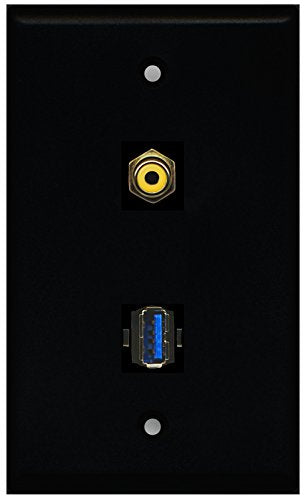 RiteAV - Black 1 Port RCA Yellow 1 Port USB 3.0 Wall Plate