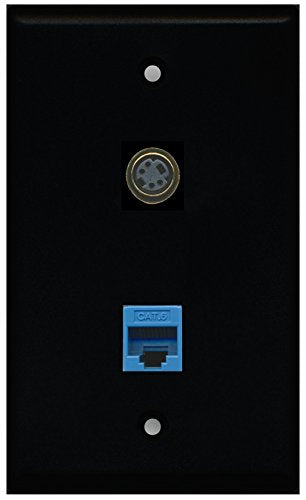 RiteAV - Black 1 Port S-Video 1 Port Cat6 Ethernet Blue Wall Plate