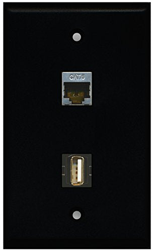 RiteAV - Black 1 Port USB A-A 1 Port Shielded Cat6 Ethernet Wall Plate