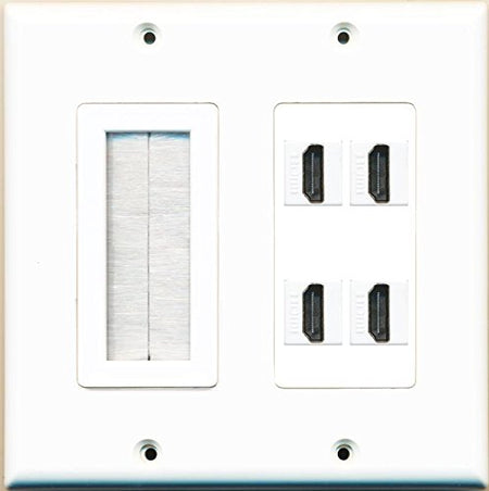 RiteAV Brush Plate and 4 HDMI White Wall Plate White