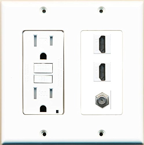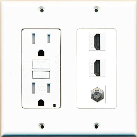RiteAV GFCI 125V 15A Power Outlet and 2 HDMI White Coax Wall Plate White