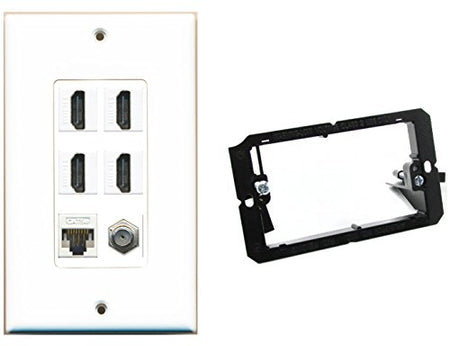 RiteAV Mounting Bracket and 1 Gang Decorative 4 HDMI Coax Cat5e Wall Plate White
