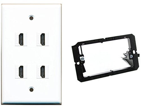 RiteAV - Mounting Bracket and (1 Gang Flat) 4 HDMI Wall Plate White