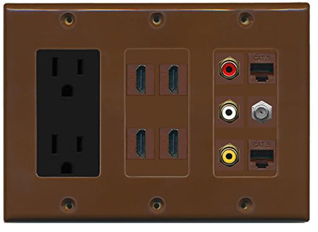 RiteAV Power 4 HDMI 3-RCA Composite Cat6 Ethernet Coax TV Wall Plate - Brown
