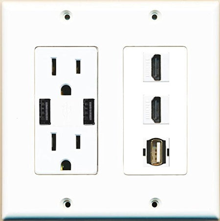 RiteAV Power Outlet 2 USB Charger 2 HDMI White USB A-A Wall Plate White