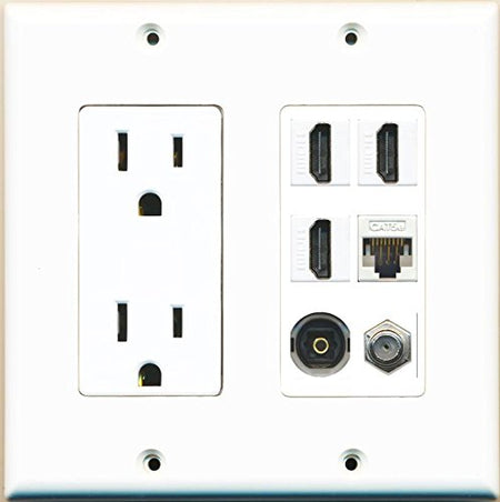 RiteAV Power Outlet 3 HDMI Coax Cat5e Toslink Wall Plate - White