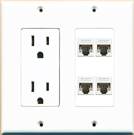 RiteAV Power Outlet 4 Cat5E Wall Plate White