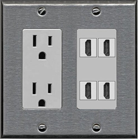 RiteAV Power Outlet 4 HDMI Wall Plate - Stainless Steel/Gray