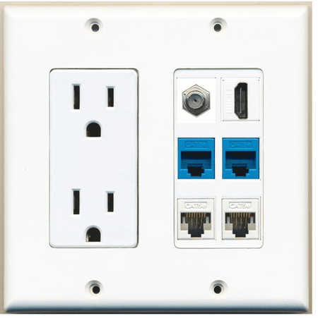 RiteAV Power Outlet Coax Cable TV HDMI 2 x Cat5e Blue and 2 x Cat5e Wall Plate