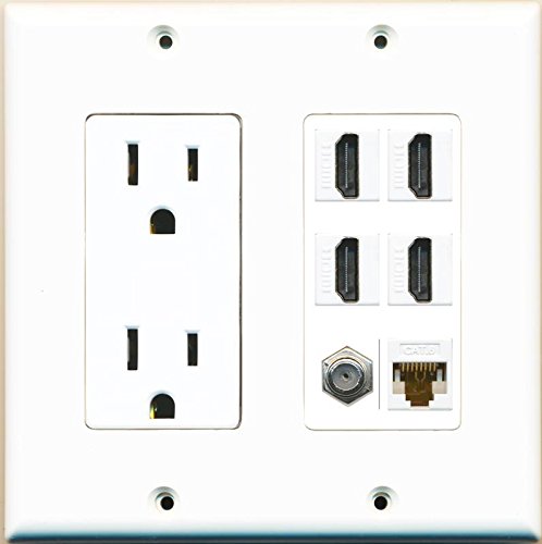 RiteAV Power Outlet HDMI White 2 Coax 3 Cat6 Wall Plate White