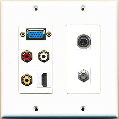 RiteAV SVGA HDMI Coax Composite Video 3.5mm Wall Plate Dual Gang White