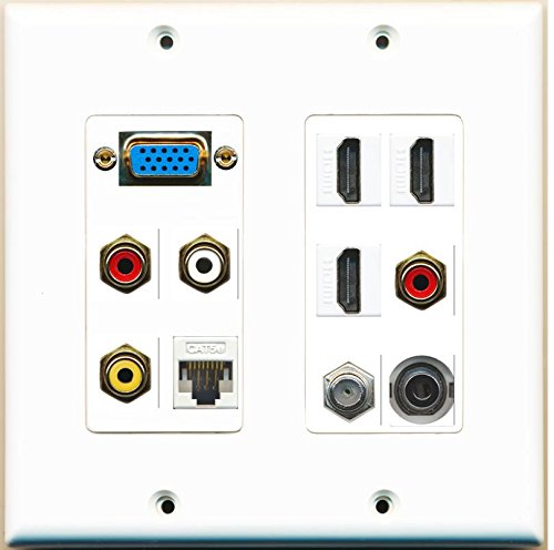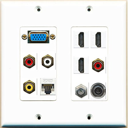 RiteAV - (SVGA Plate 2 Gang) 3 HDMI Coax Cat5e White Composite Video RCA 3.5mm Wall Plate