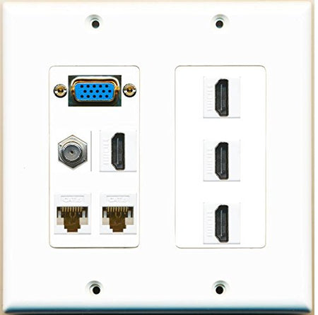 RiteAV - (SVGA Plate -2 Gang) 4 HDMI 1 Coax 2 Cat6 White Wall Plate Dual Gang White